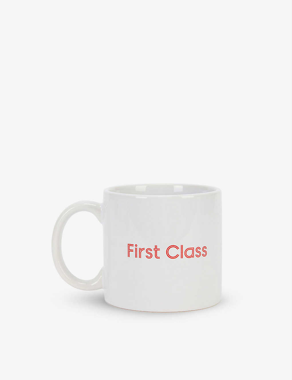 Part of an exclusive collaboration combining two iconic British institutions, Royal Mail at Selfridges dreams up this ceramic mug which is playfully printed with “First Class” across the front.