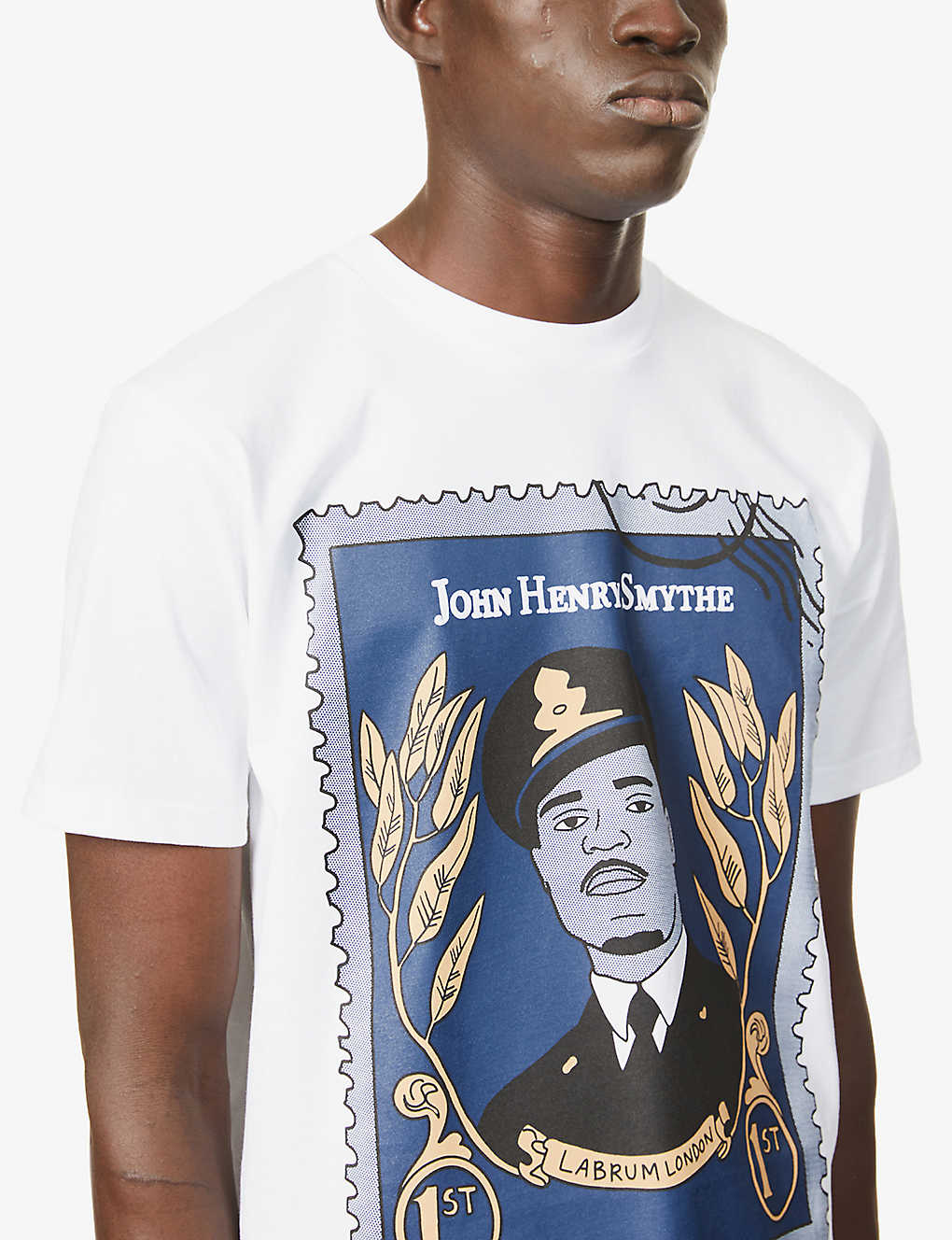 From our exclusive Labrum London capsule, the cotton-jersey Stamp T-shirt is printed in celebration of British West African hero, John Henry Smythe, who originally hailed from Sierra Leone.