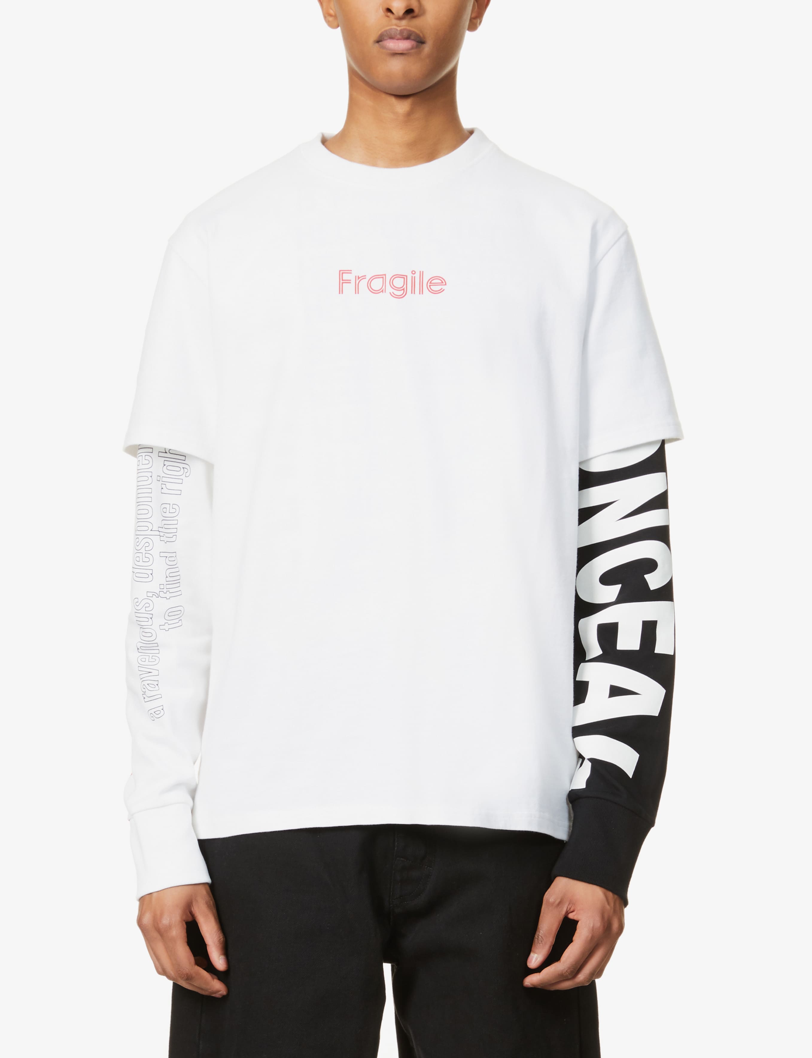Arriving in style as part of our exclusive Royal Mail at Selfridges capsule, the Fragile T-shirt is delivered in organic cotton-jersey with a brand text print stamped at the chest.