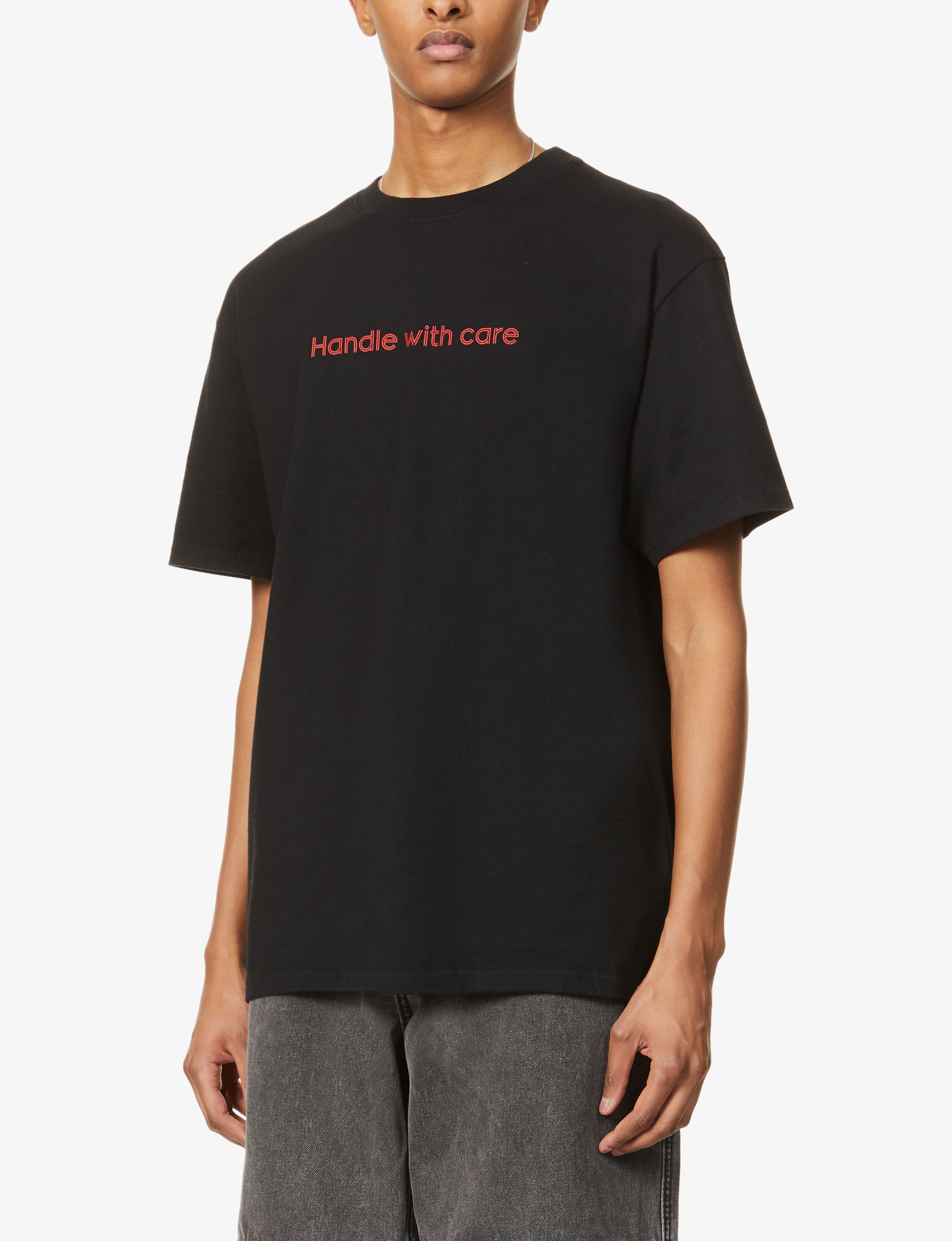 HANDLE WITH CARE' SHORT SLEEVED TSHIRT - BLACK on Royalmail Sphere from